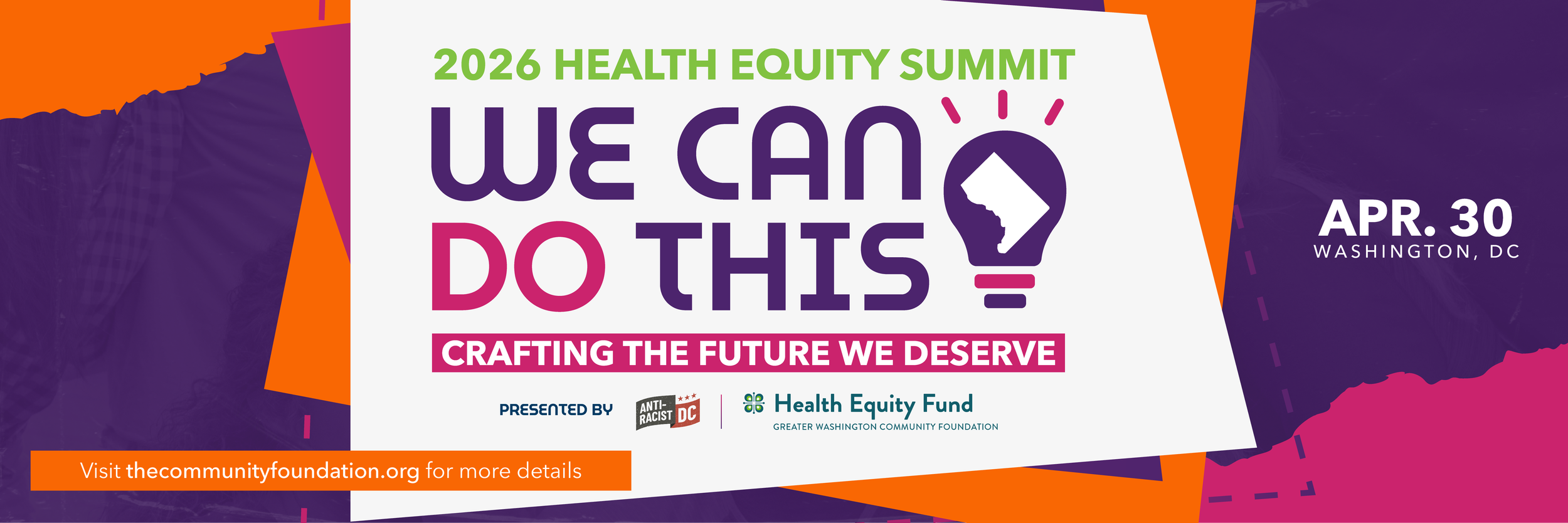 Join the Greater Washington Community Foundation and Anti-Racist DC on Thursday, April 30 for the 2026 Health Equity & Economic Justice Summit.