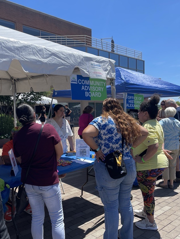 The Community Advisory Board shares information about upcoming opportunities at a resource fair in Alexandria.
