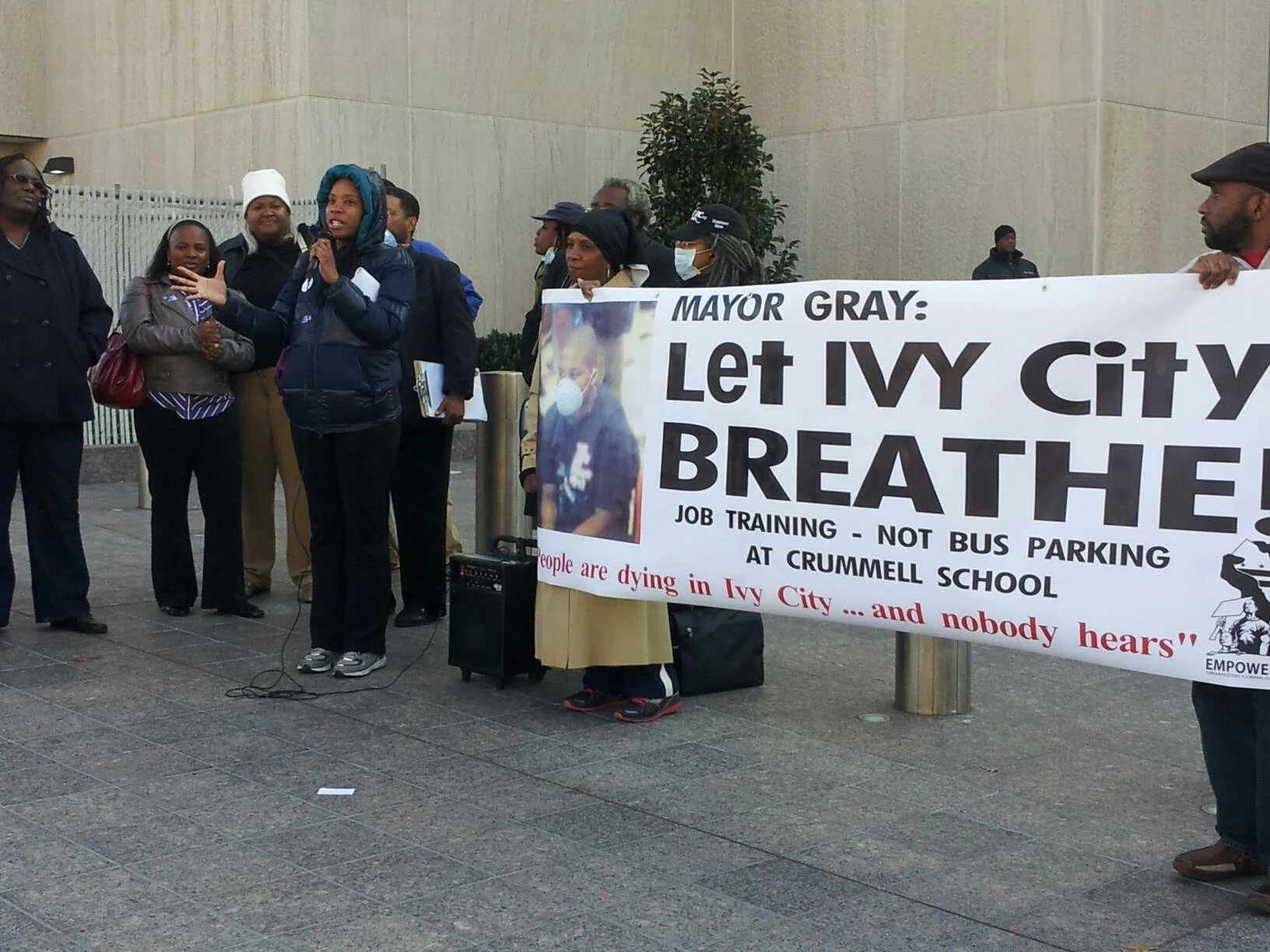 Ivy City Residents protest against a proposed bus terminal in their neighborhood.