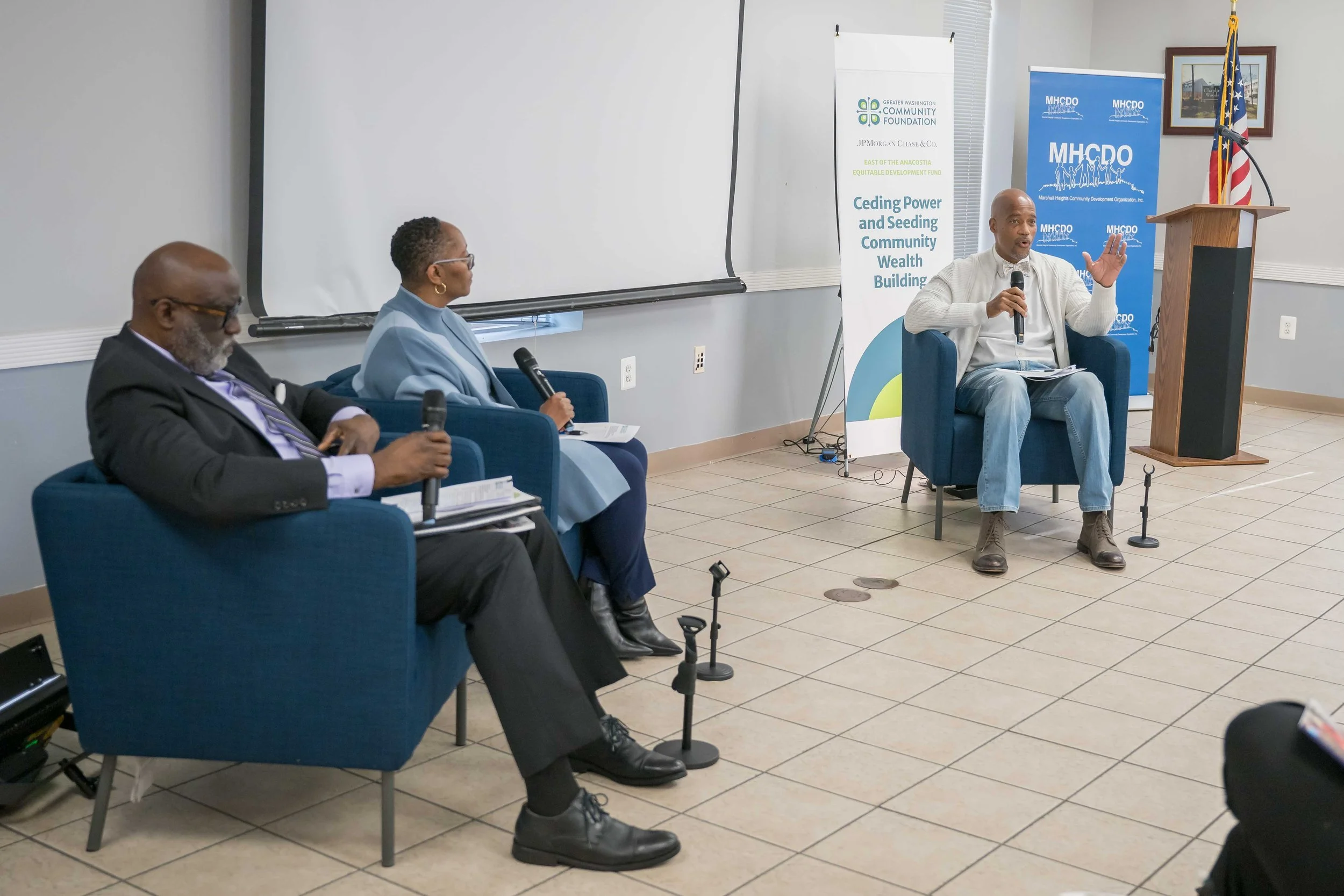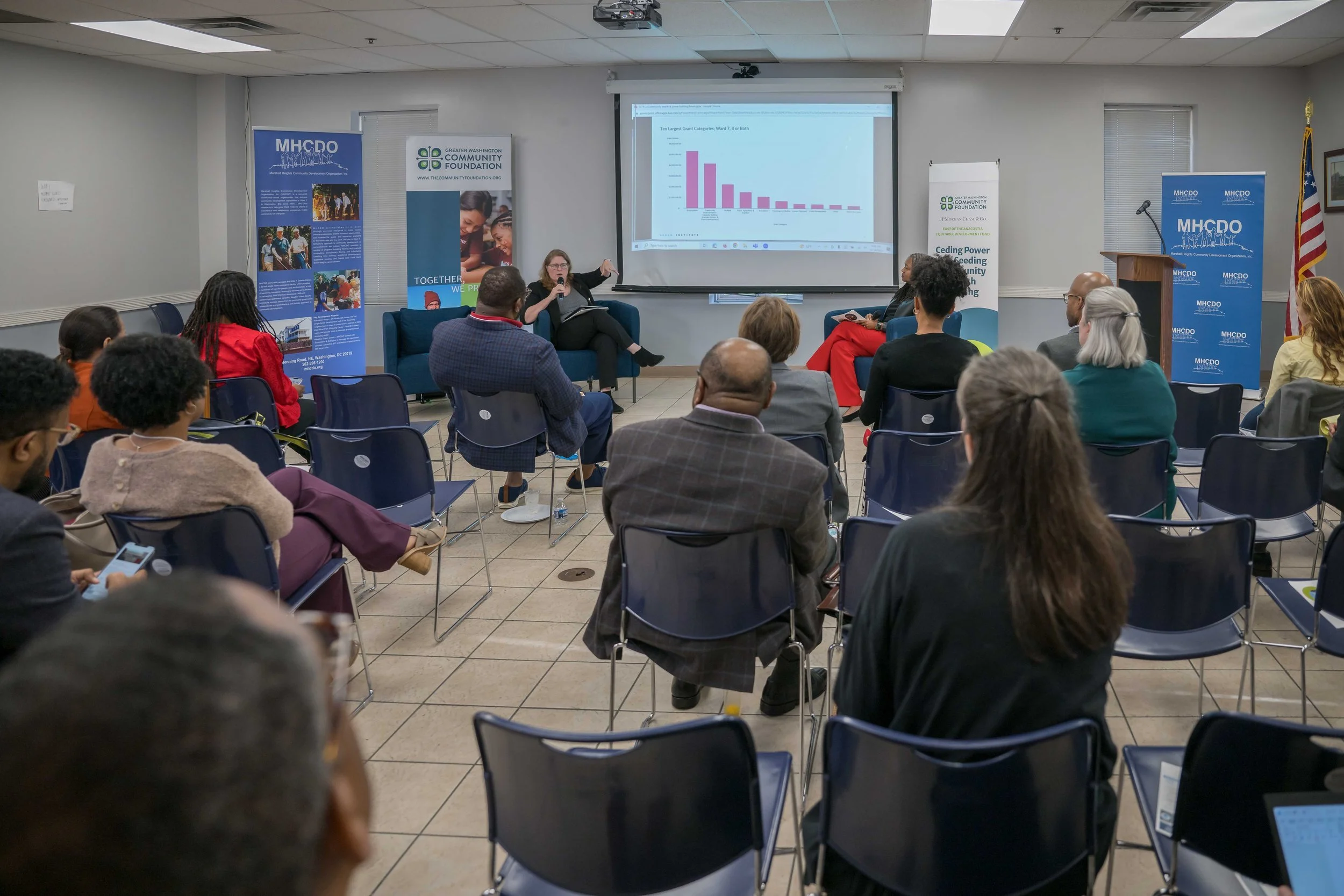 Earlier this month, The Community Foundation and JP Morgan Chase convened funders and nonprofit partners at the Marshall Heights Community Development Organization to hear directly from community partners about the best ways to promote community wealth building and equitable development in DC Wards 7 & 8.